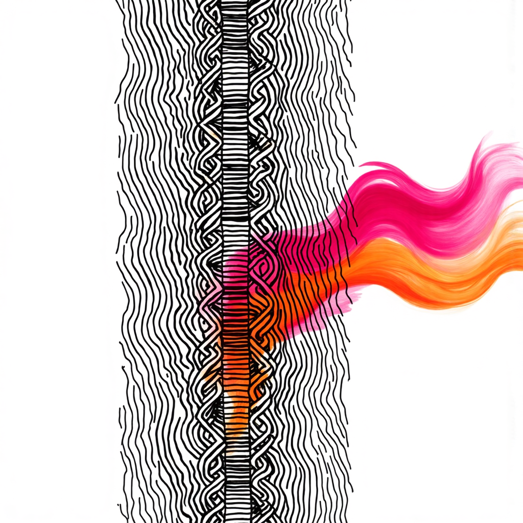 Flame in Motion by J.J. Leeto combines bold black ink linework with vibrant strokes of magenta and fiery orange, symbolizing flow, energy, and movement. Perfect for modern interiors, this digital download is versatile for both home and office spaces.