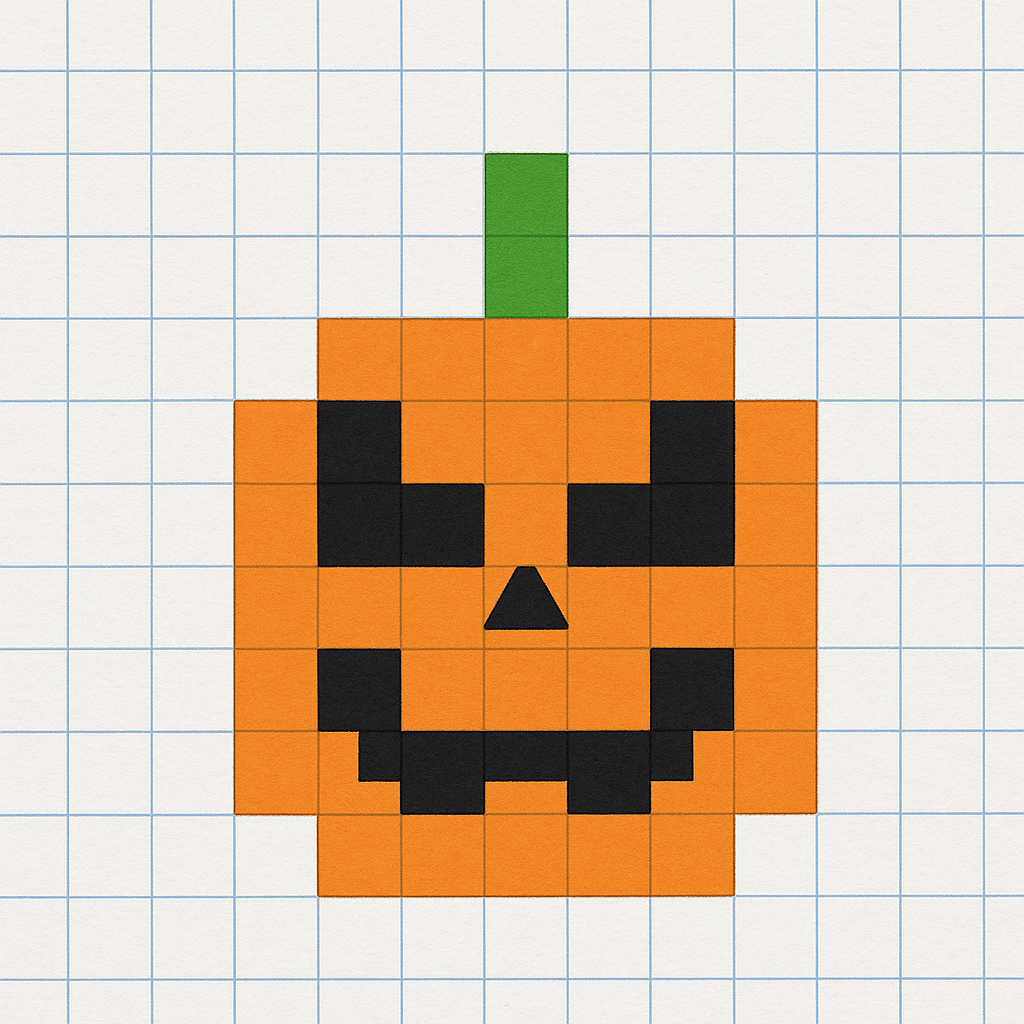Pixel Pumpkin Template → Color and design your own jack-o-lantern faces.