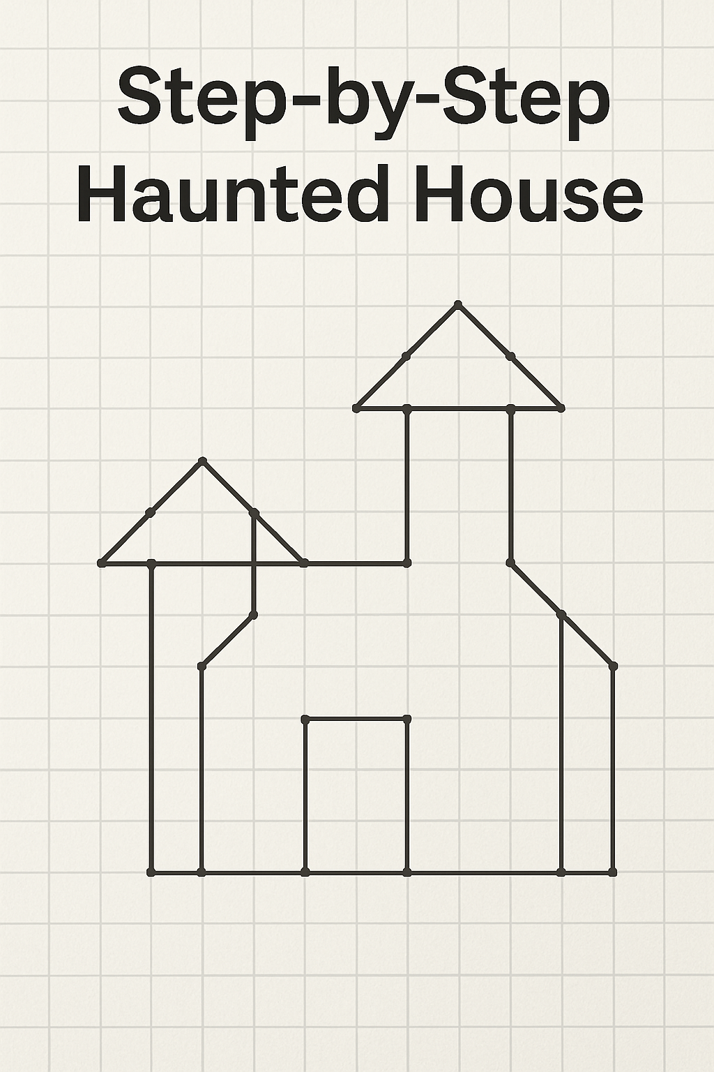 Haunted House Drawing Grid → Build your own spooky haunted house with doors, windows, and towers.